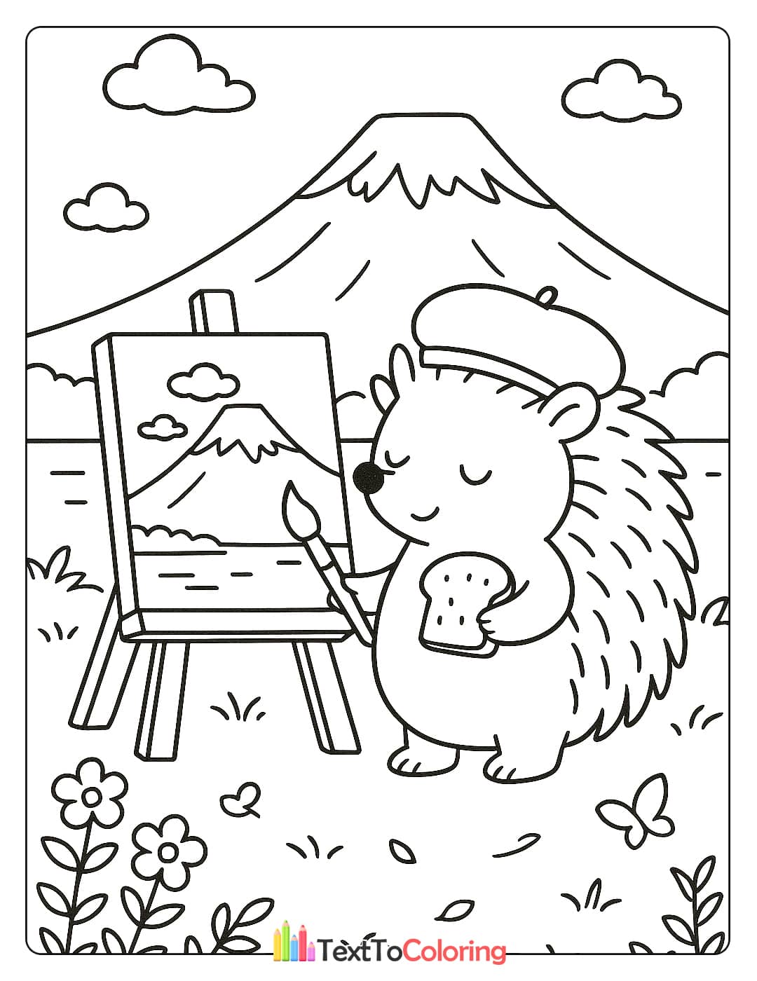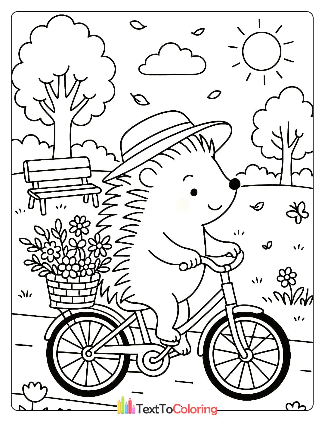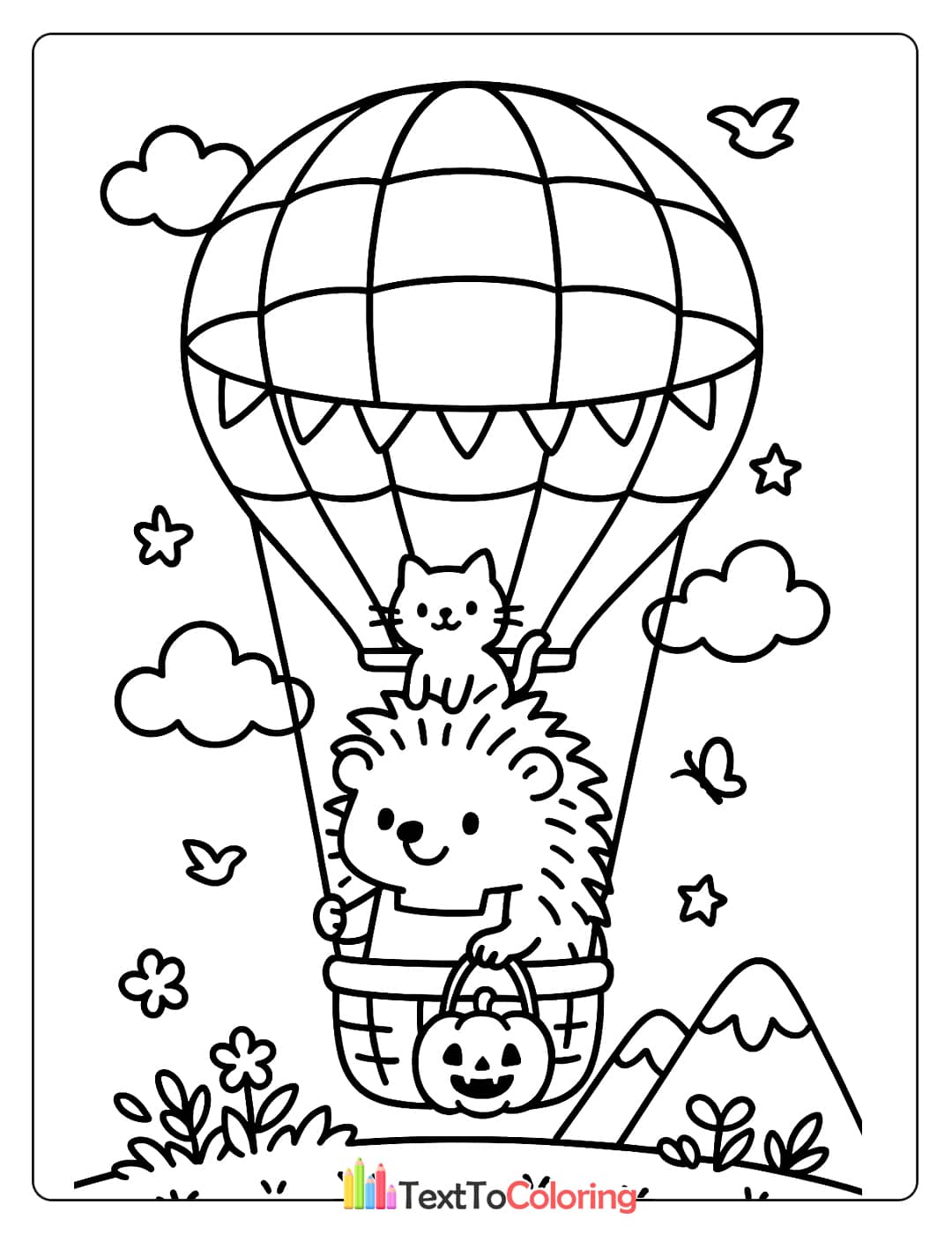 Want to make your own hedgehog scenes? Try our Text to Coloring tool and design custom pages with hedgehogs doing anything you imagine – camping, baking, or even flying hot-air balloons.