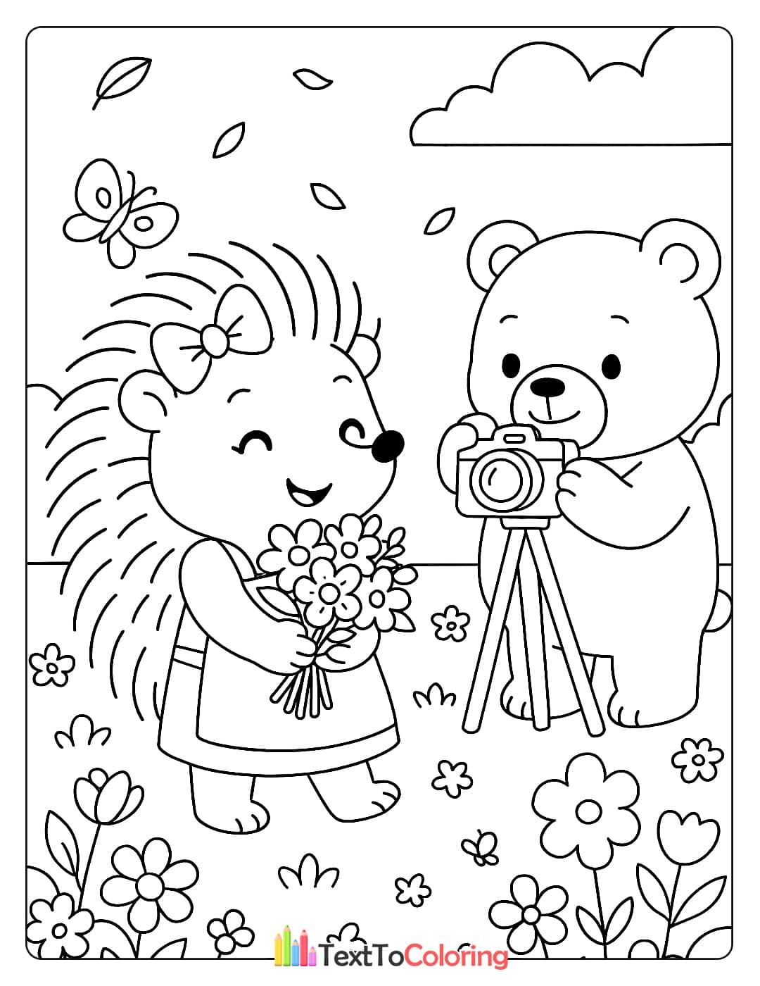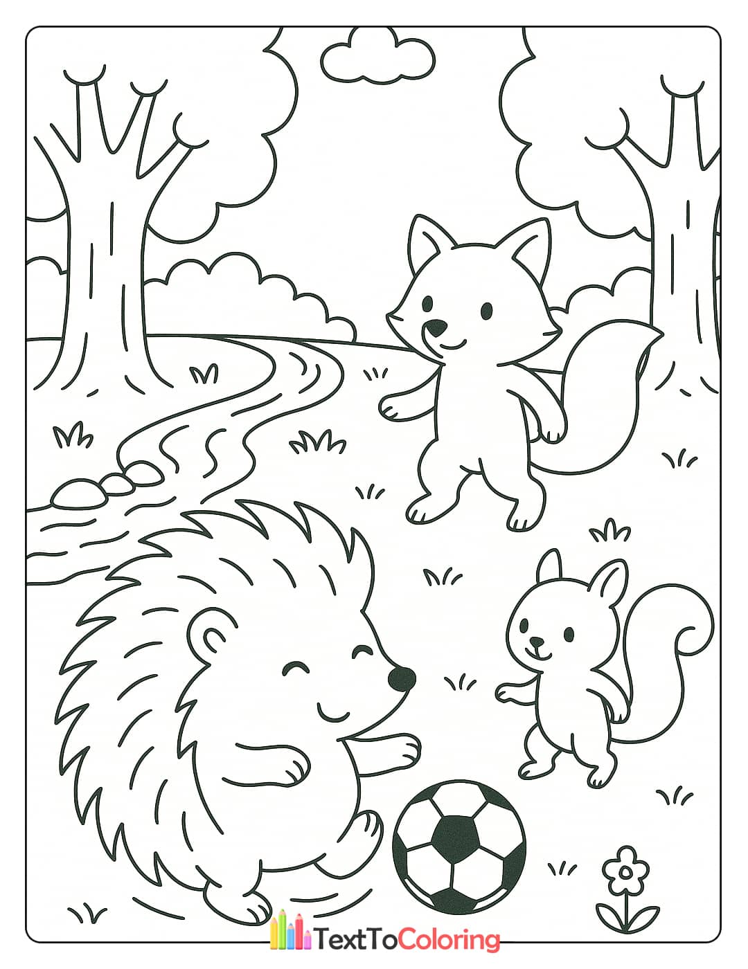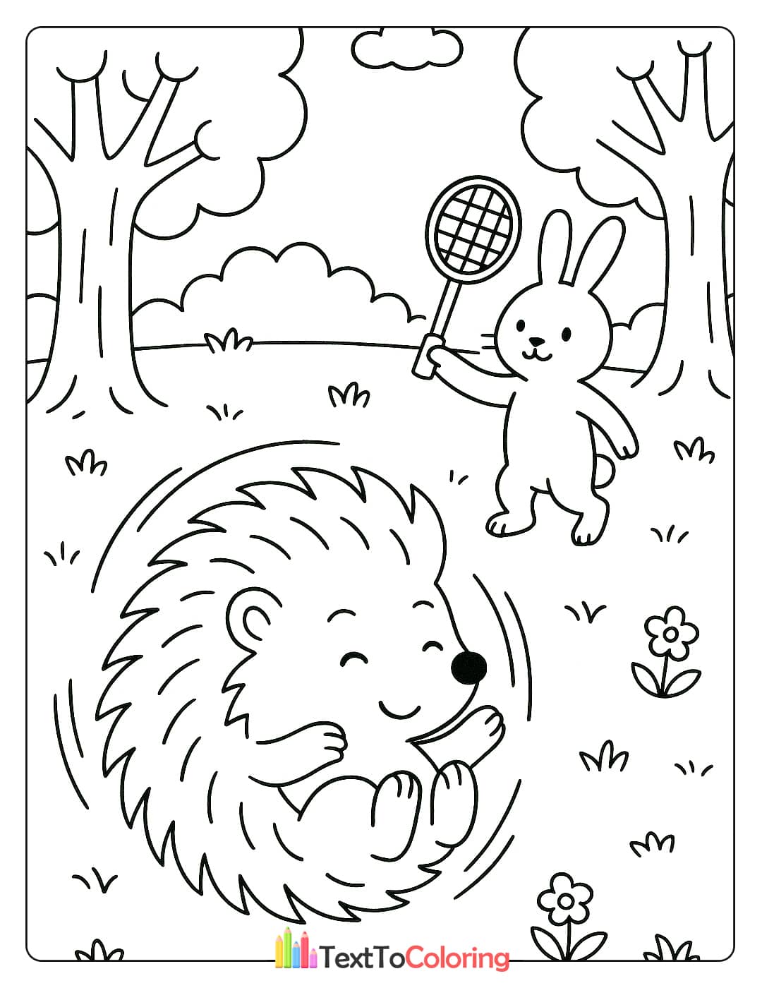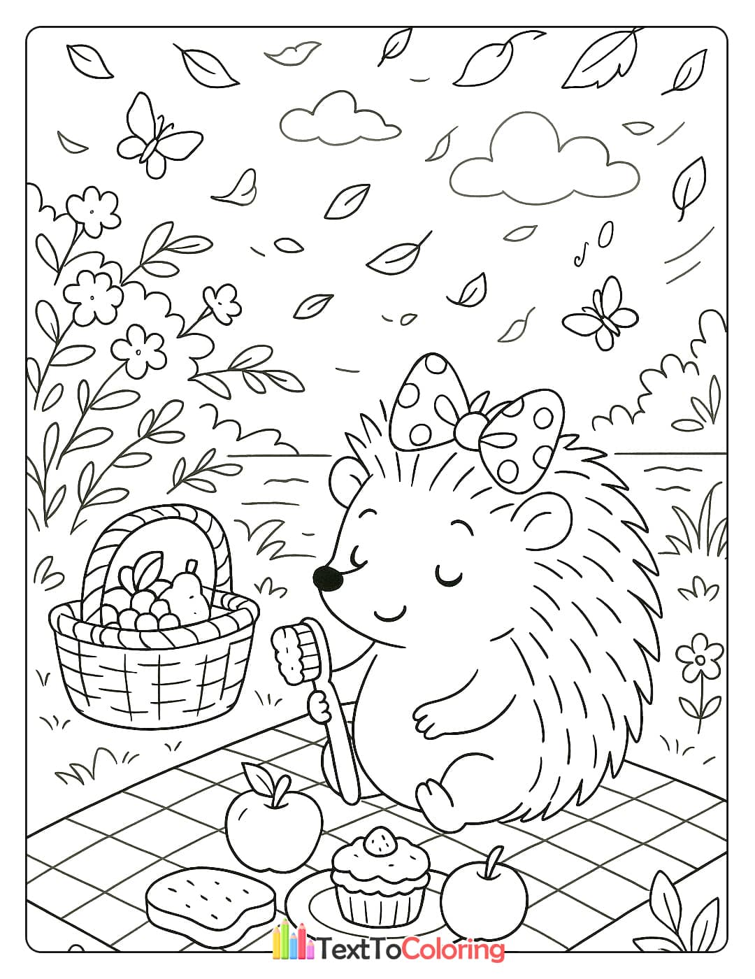 Want to make your own hedgehog scenes? Try our Text to Coloring tool and design custom pages with hedgehogs doing anything you imagine – camping, baking, or even flying hot-air balloons.