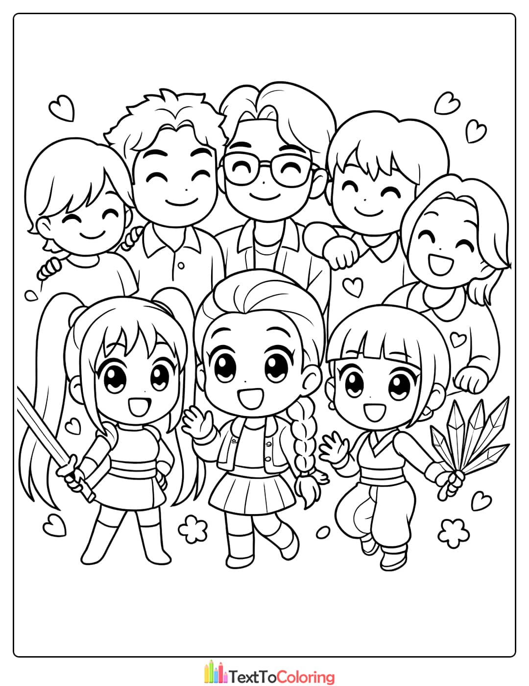 Our K-pop Demon Hunters Coloring Pages are designed for everyone: kids, teens, adults, parents, teachers, and fans of K-pop or anime art.