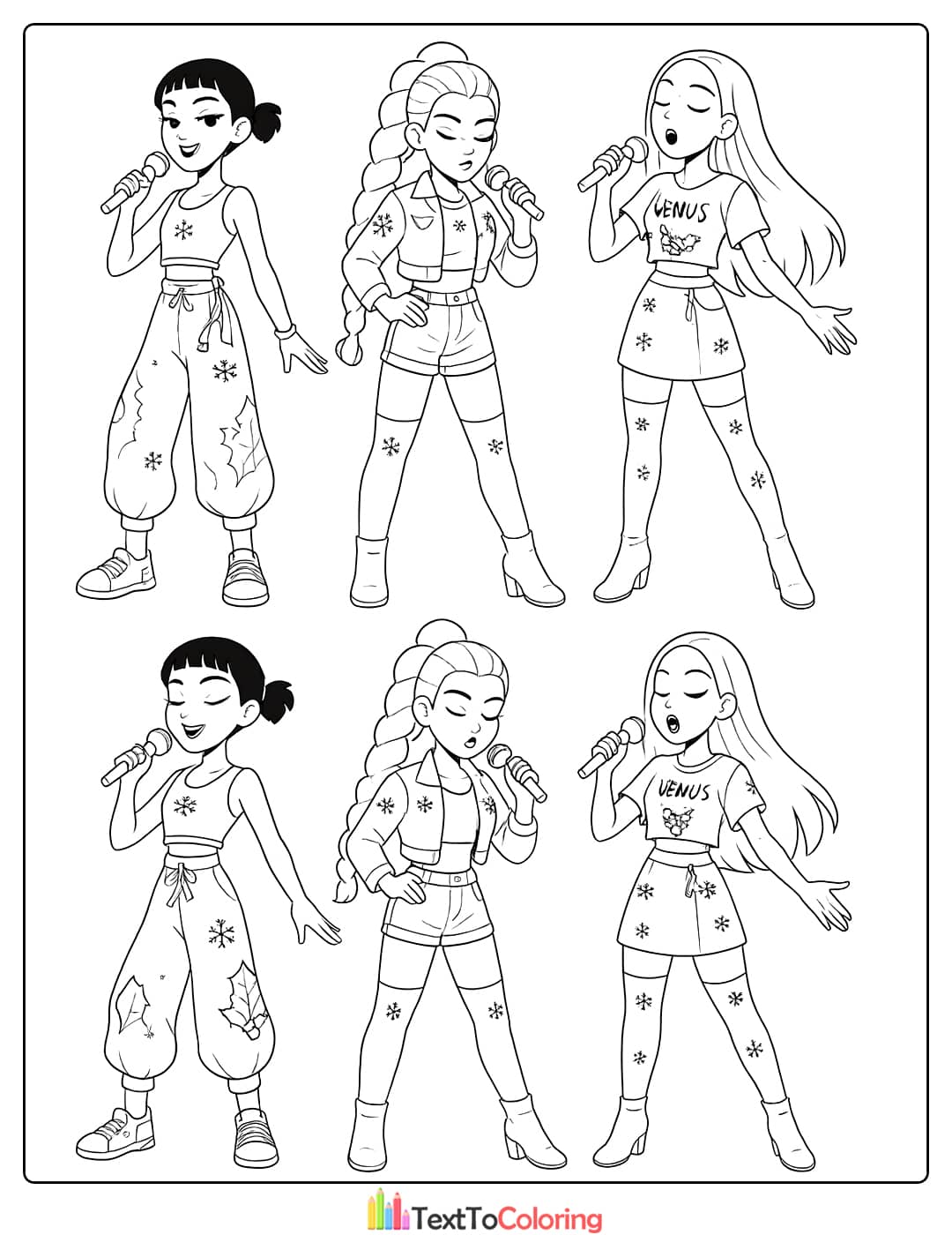 Medium Pages: Character poses with props and seasonal themes – perfect for older kids & casual fans.