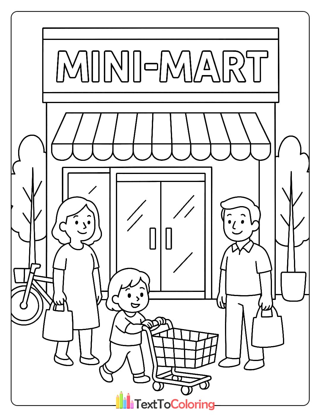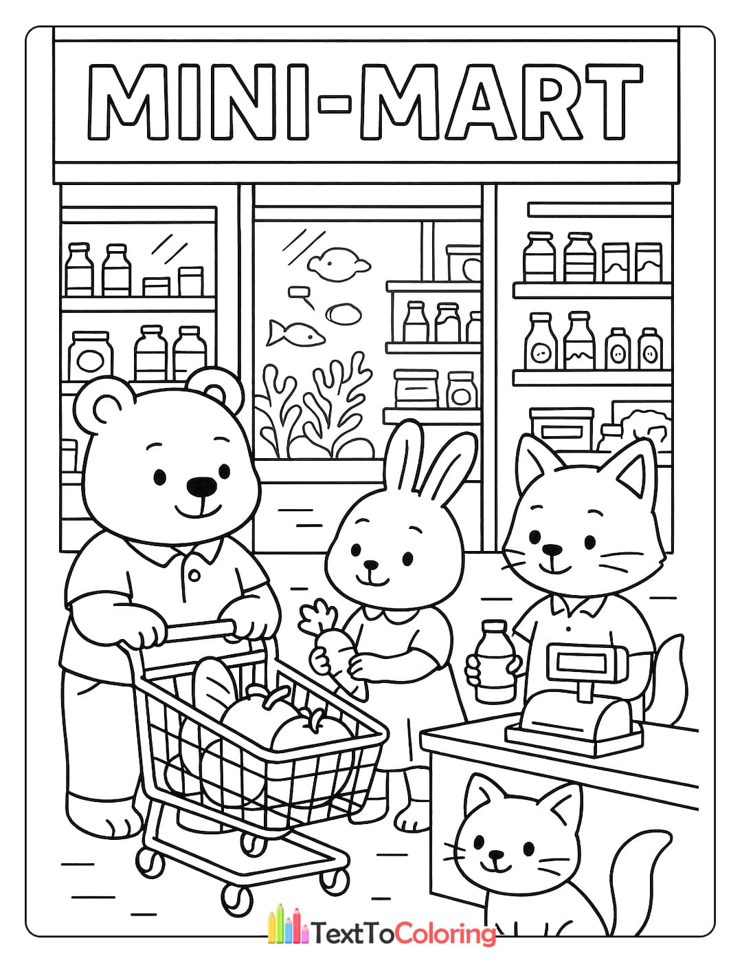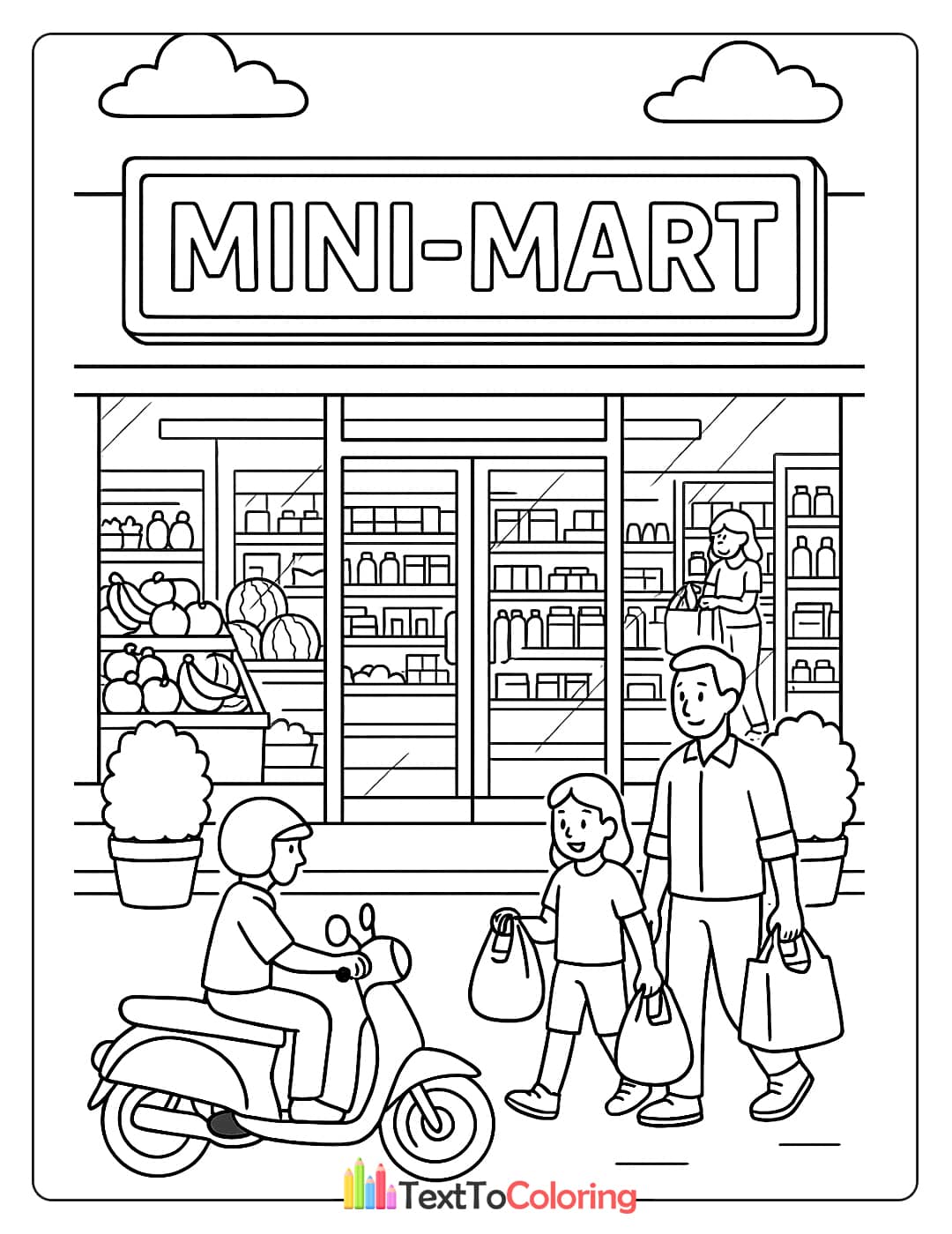 Bring everyday life into your art with Mini-Mart Coloring Pages. Start today, and let each page turn shopping time into a bright, creative adventure.