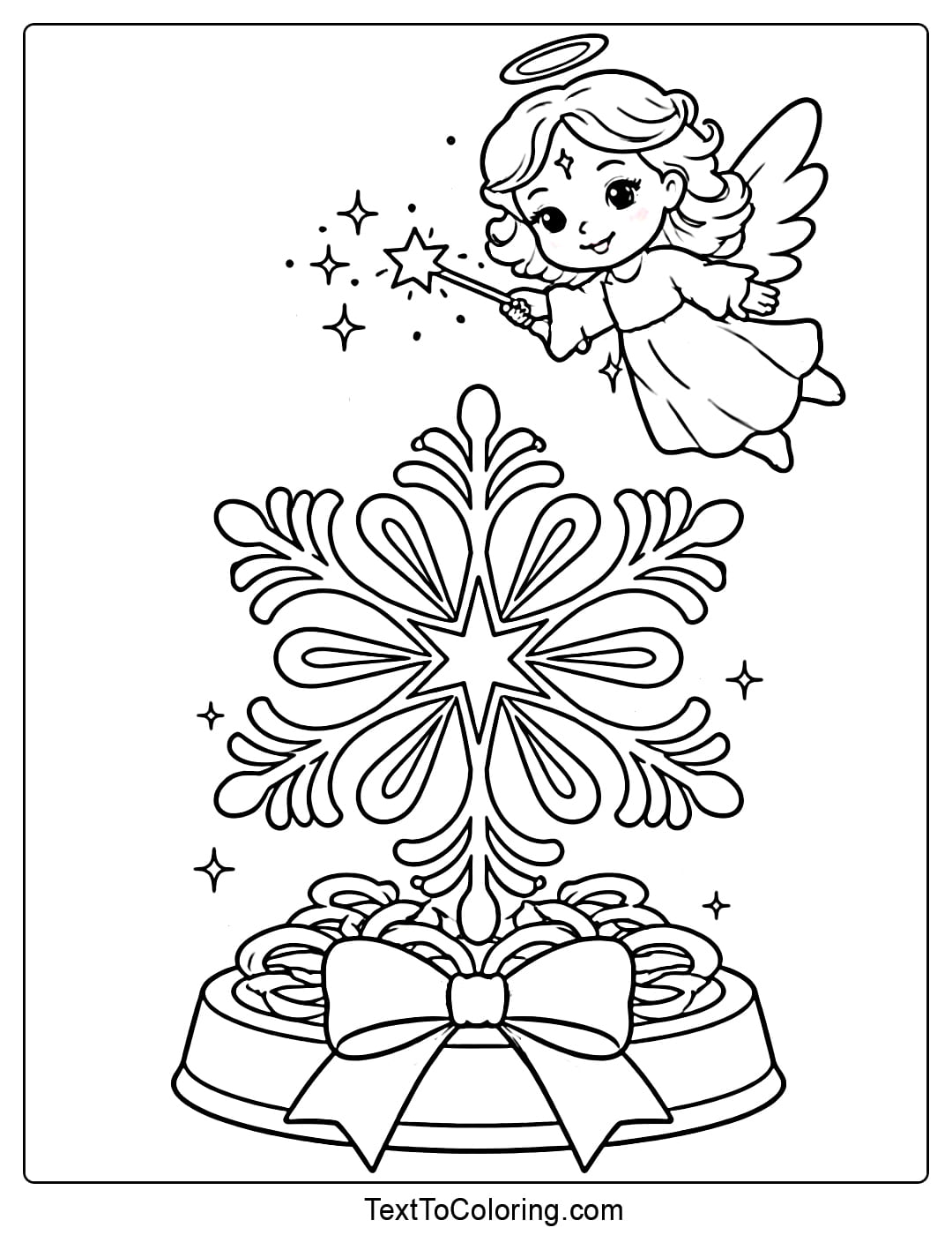 Magical Snowflake Coloring Pages With Angel Theme