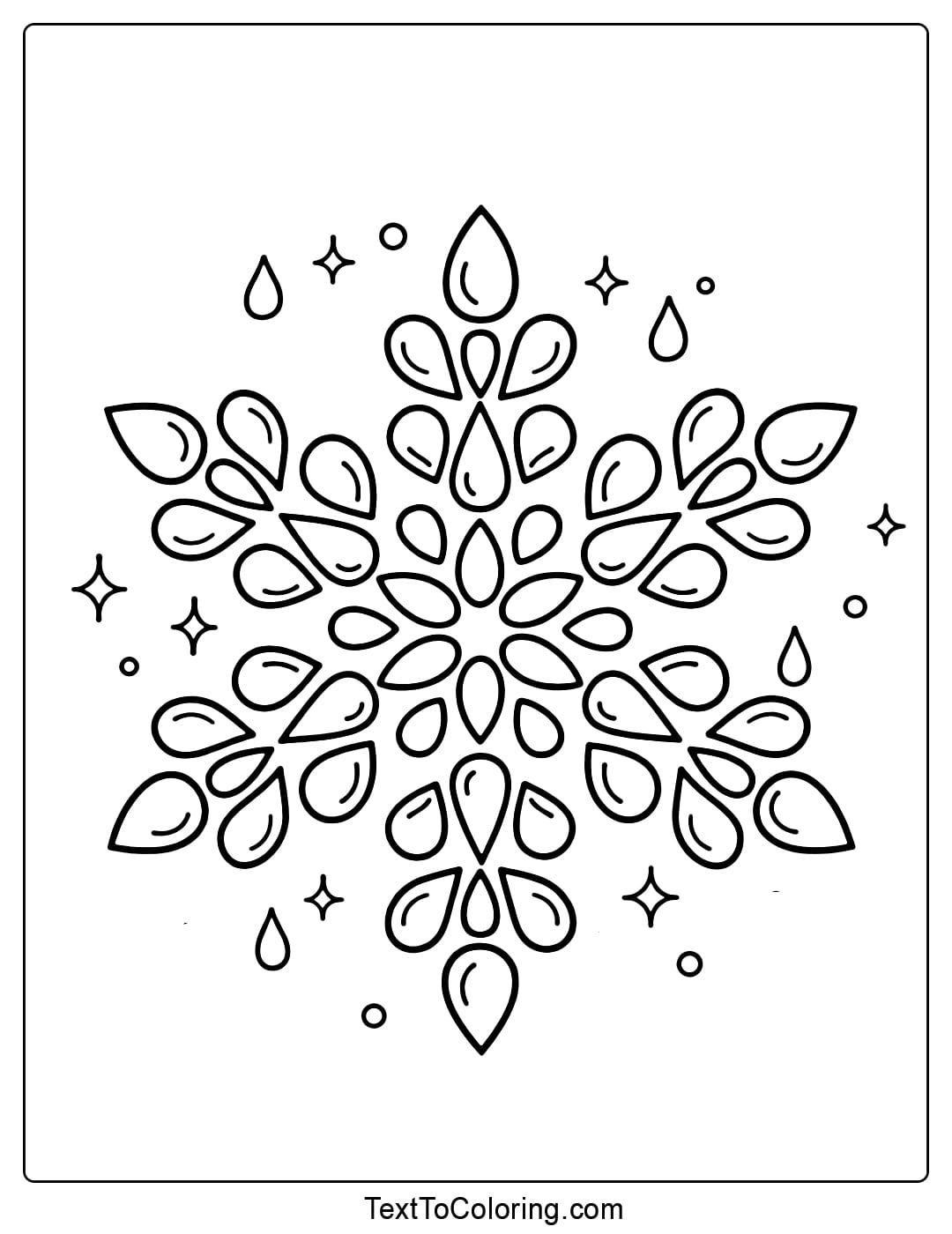 Elegant Snowflake Coloring Pages With Soft Water Drop Shapes