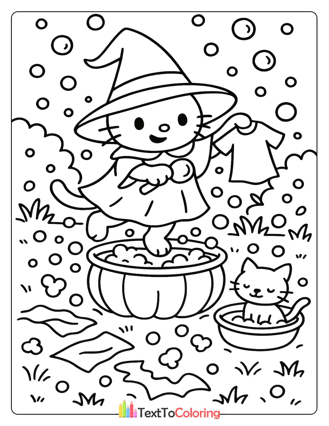 For kids, bright markers or crayons make each character pop. They can color goofy monsters in rainbow shades, add glitter to ghosts, or give witches quirky outfits. Encourage them to invent their own silly backgrounds – a haunted house with polka dots, pumpkins with funny faces, or bats wearing party hats.