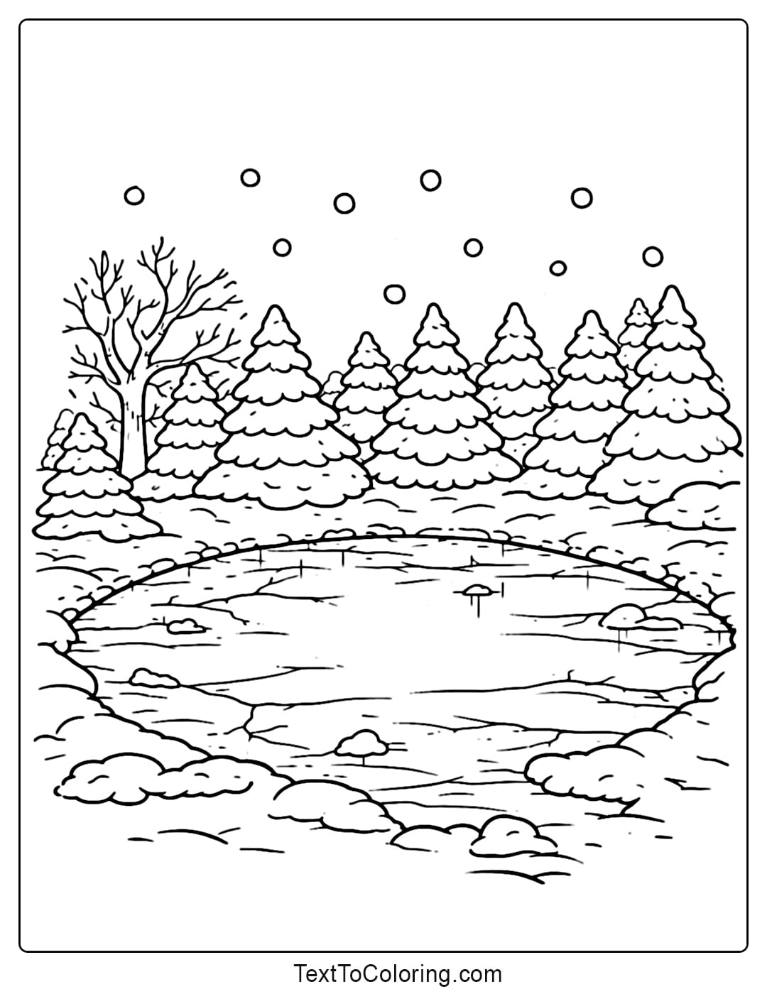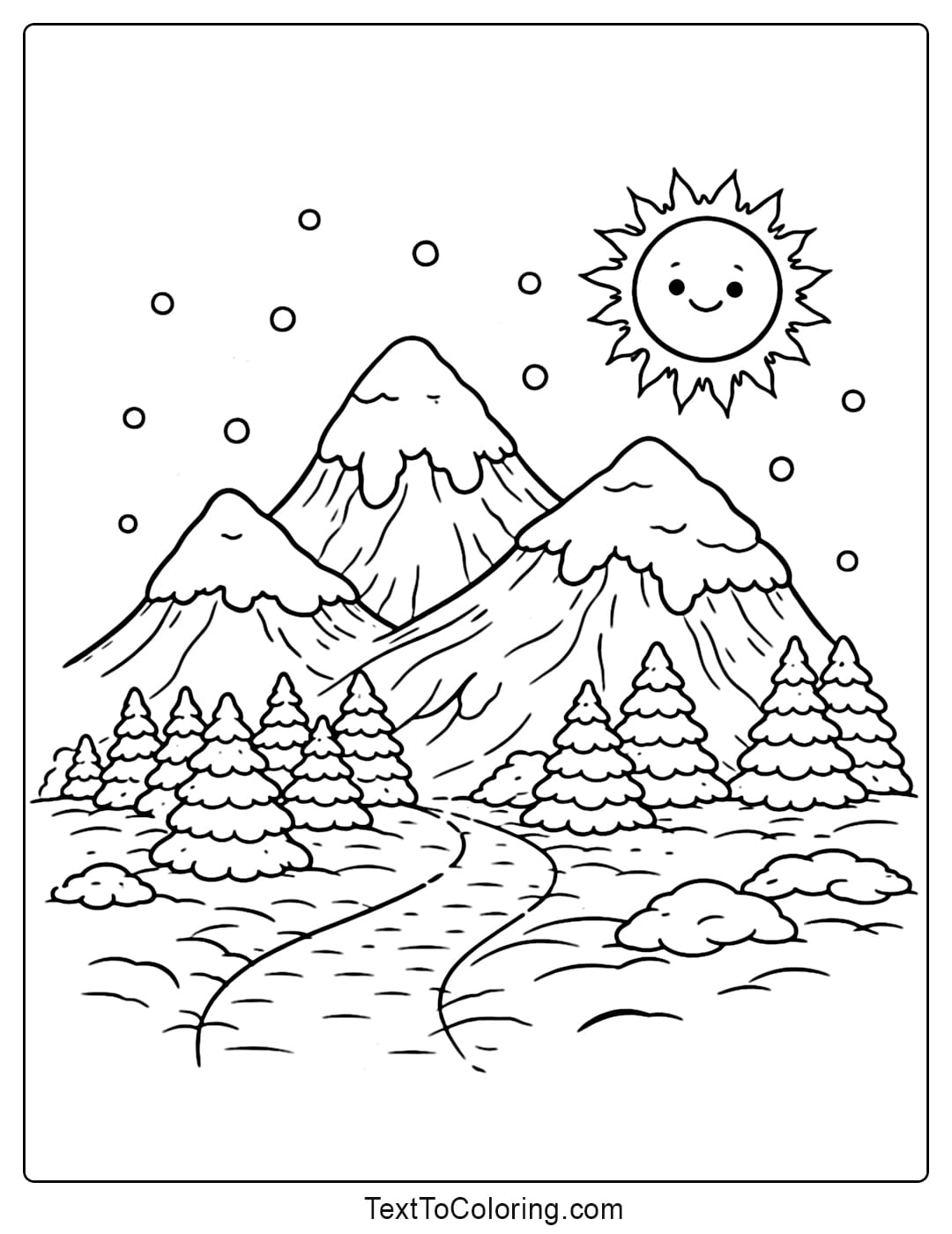 Medium Pages: Winter scenes with light details are great for older kids and family coloring time.